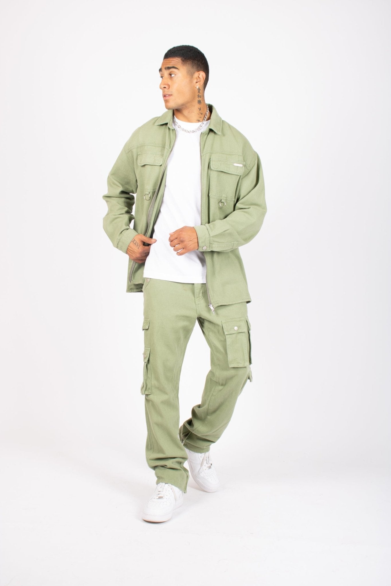 Detailing: Multiple functional cargo pockets, relaxed shoulders, rugged utility aesthetic
