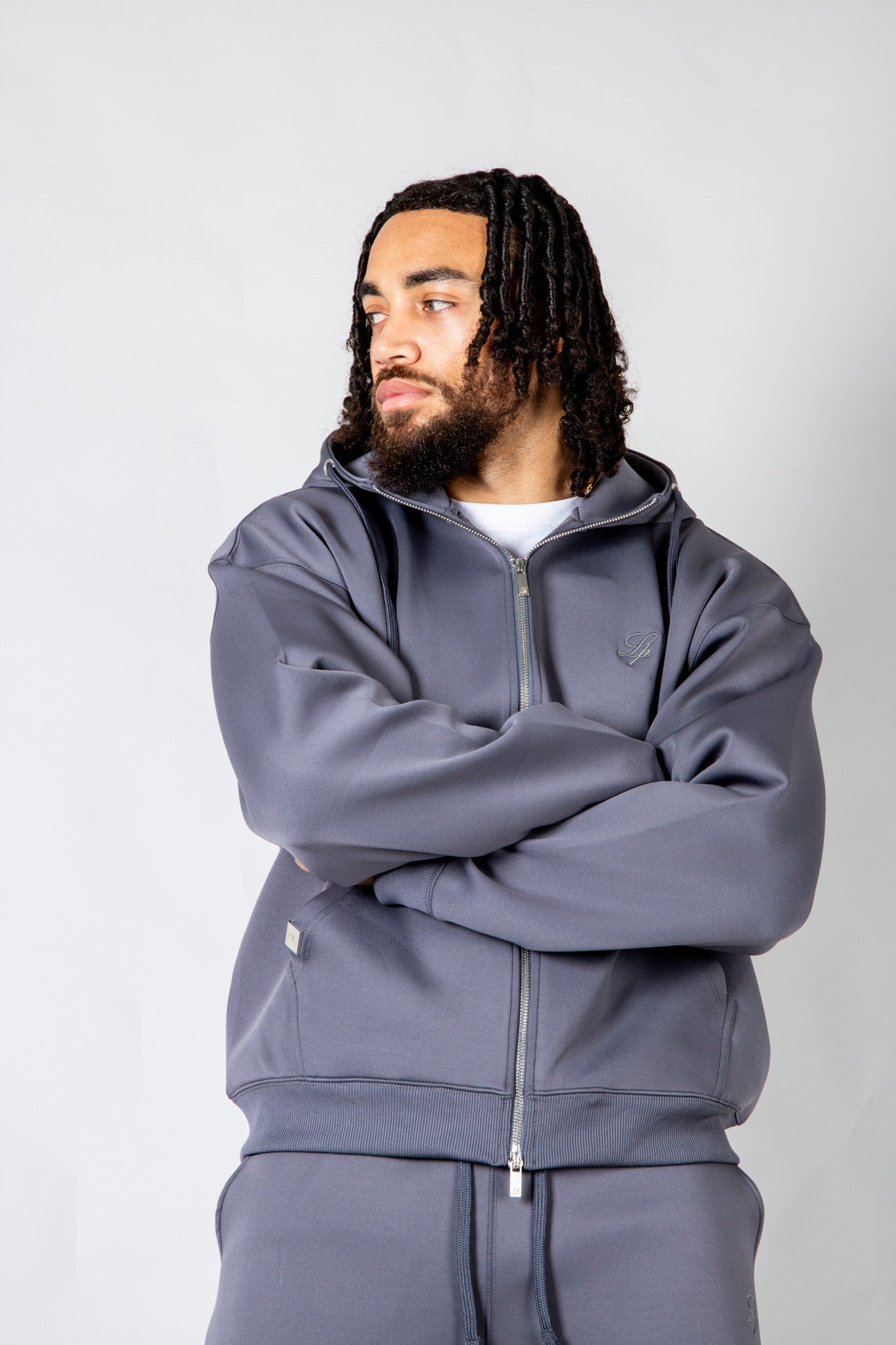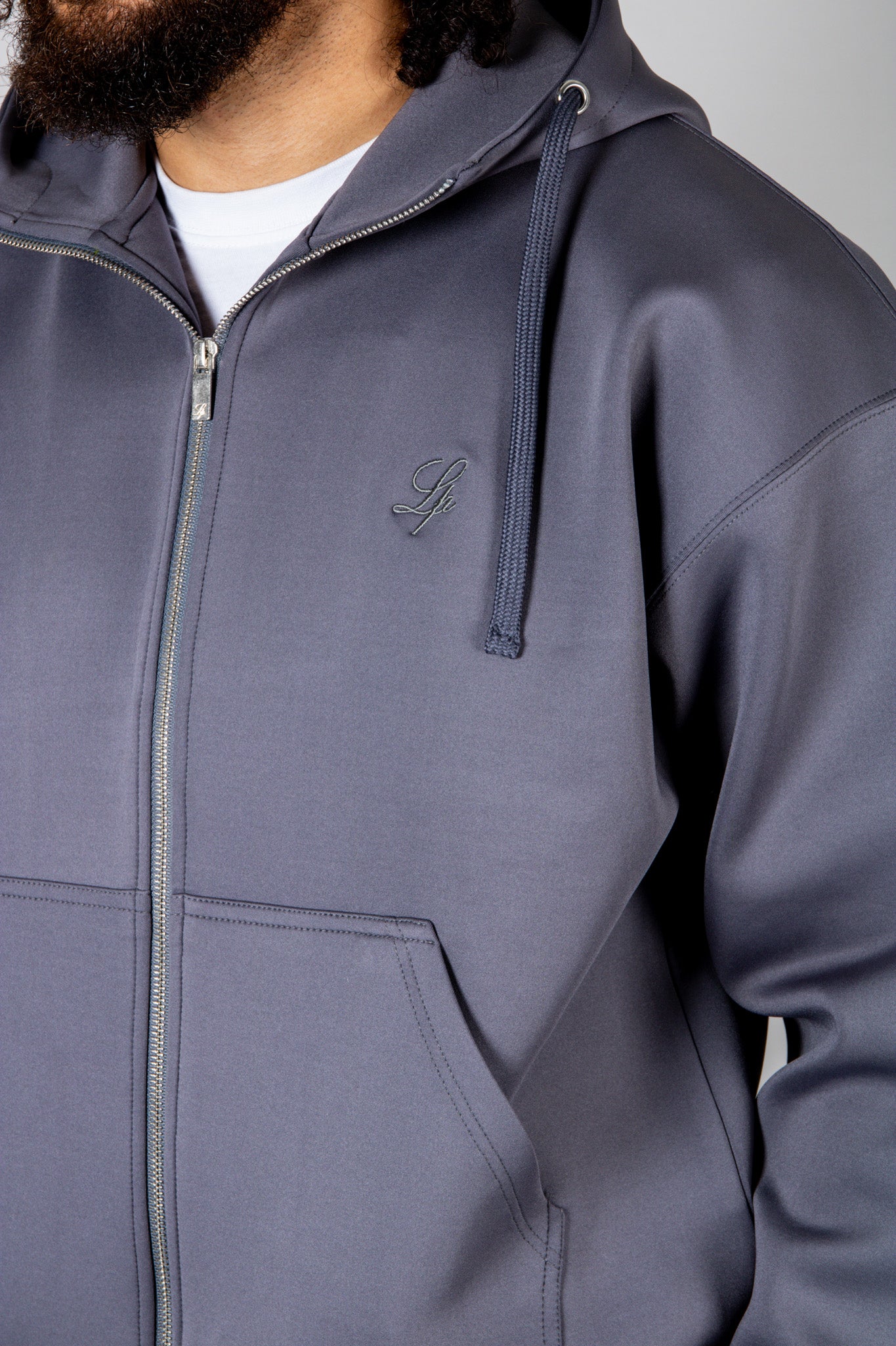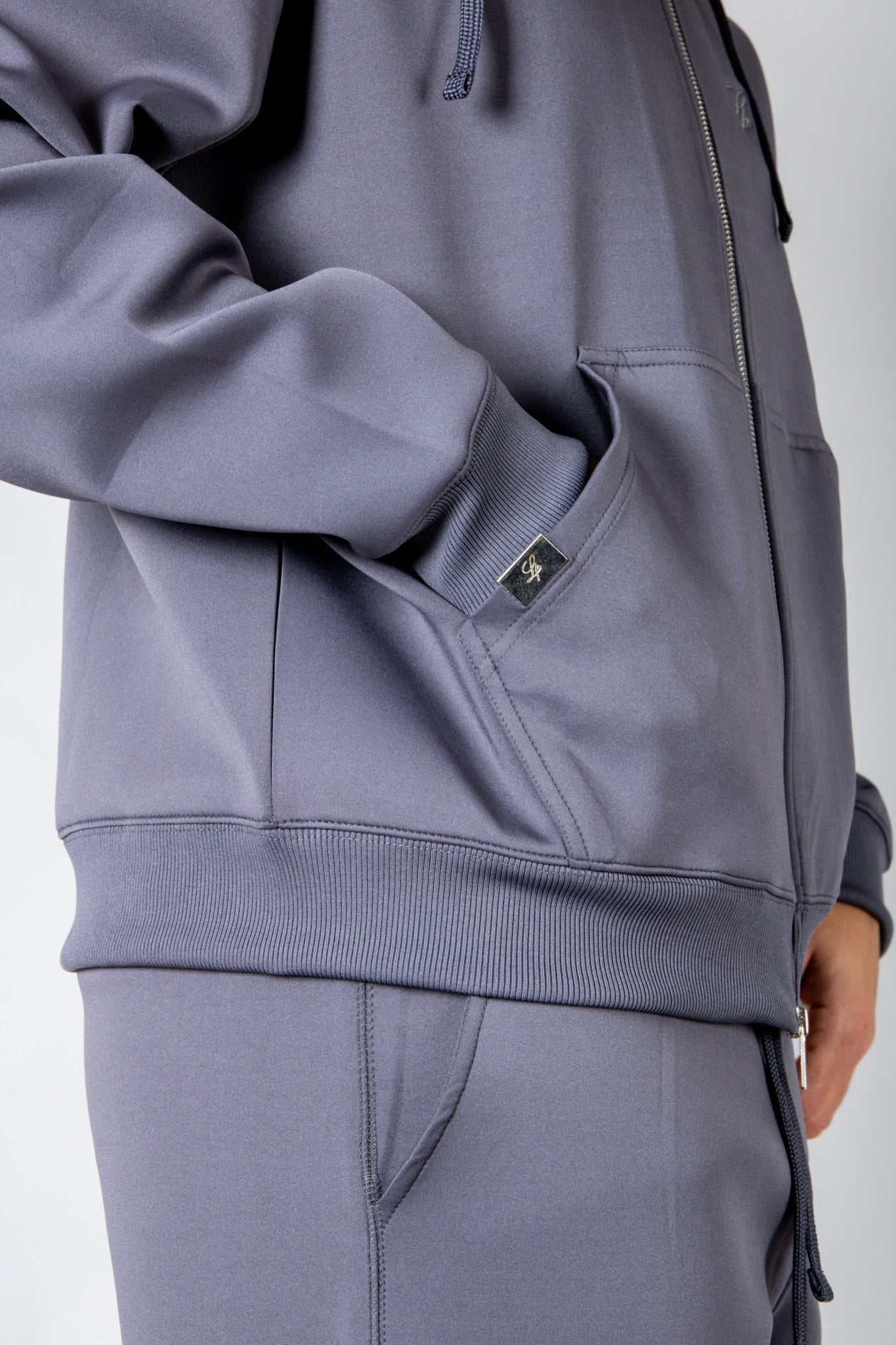 Rebellious comfort with edge. The SCUBA hoodie features a double zip and drop shoulders for effortless street style — pair with the co‑ord for the full look.