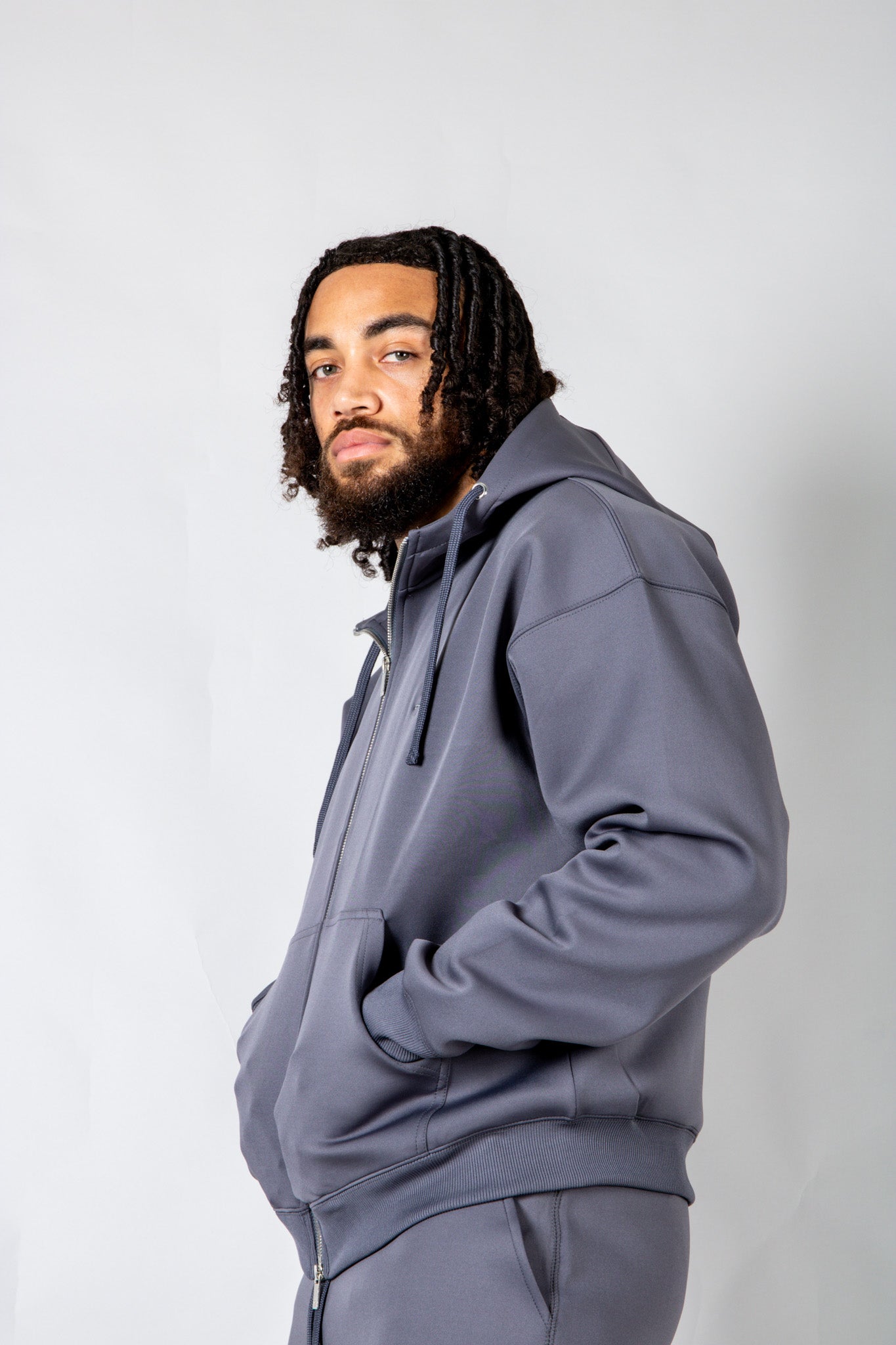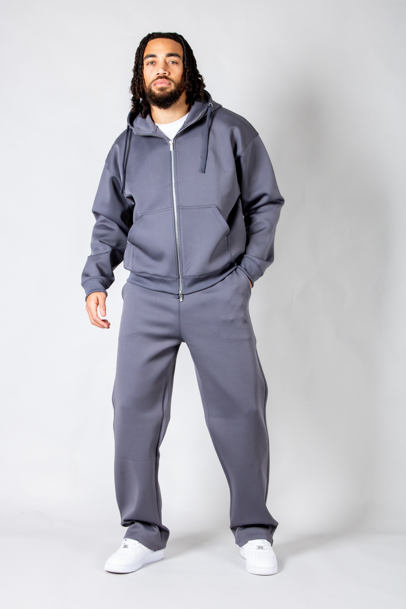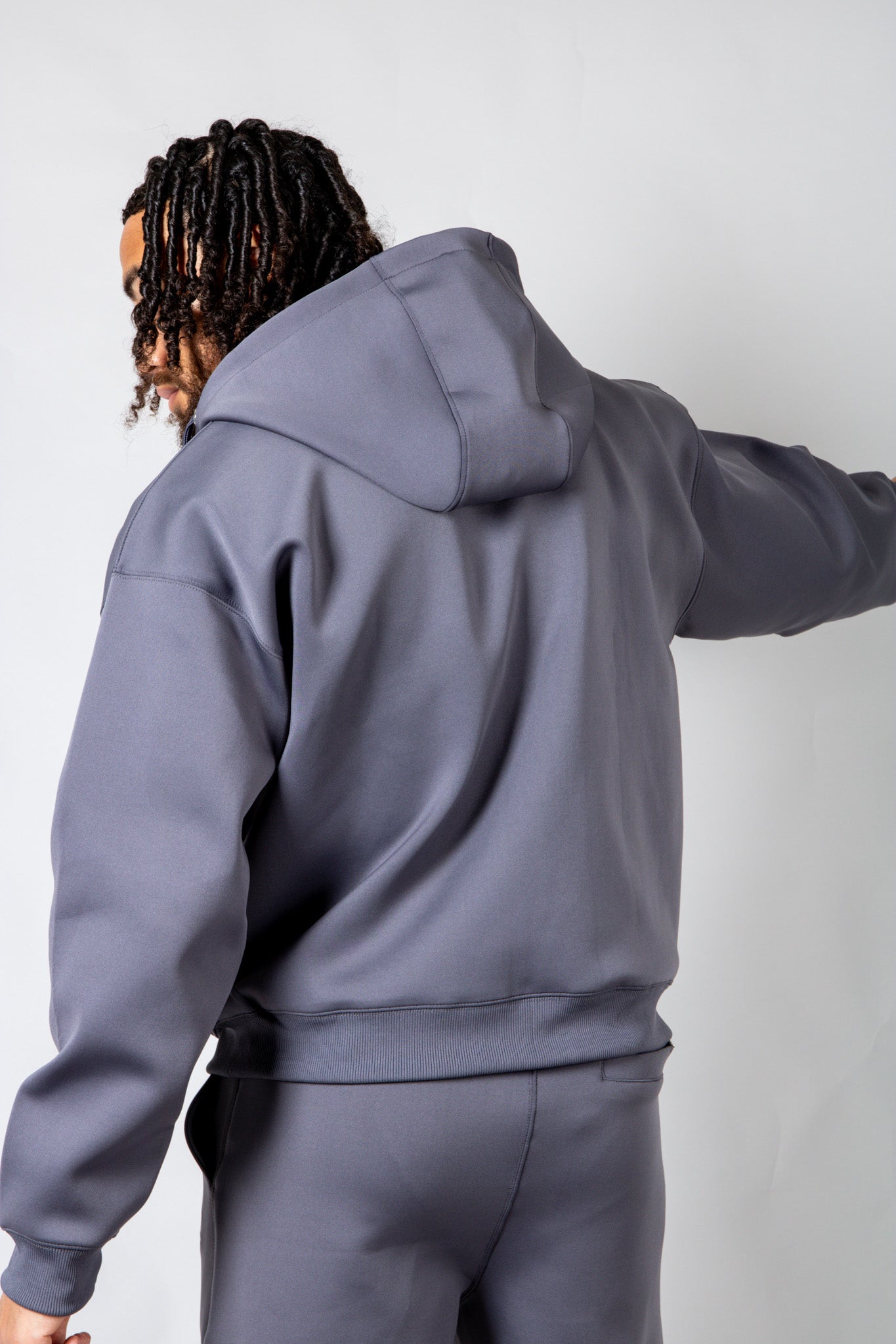 Rebellious comfort with edge. The SCUBA hoodie features a double zip and drop shoulders for effortless street style — pair with the co‑ord for the full look.