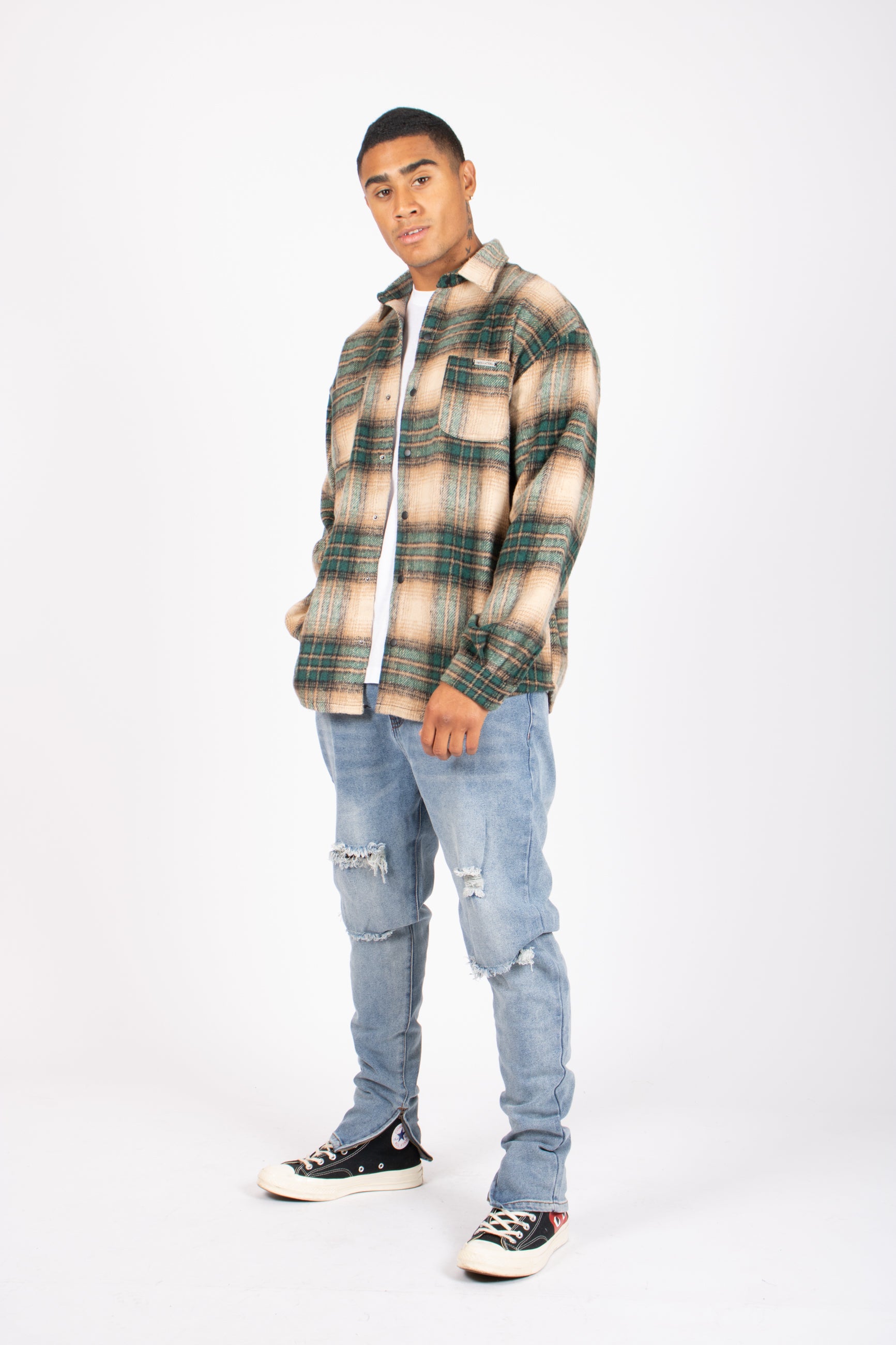 Introducing our Utility Flannel Overshirt in Beige and Green,
