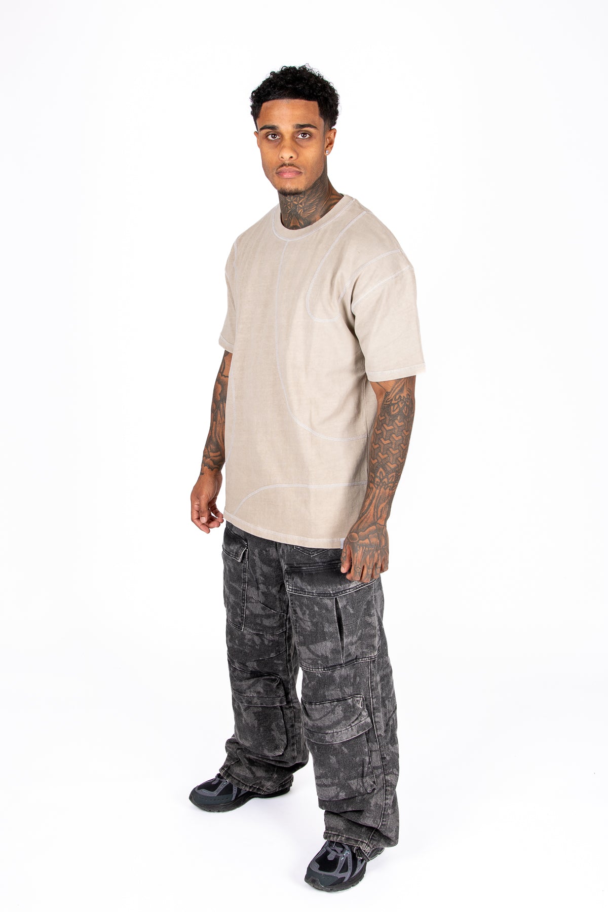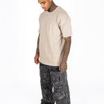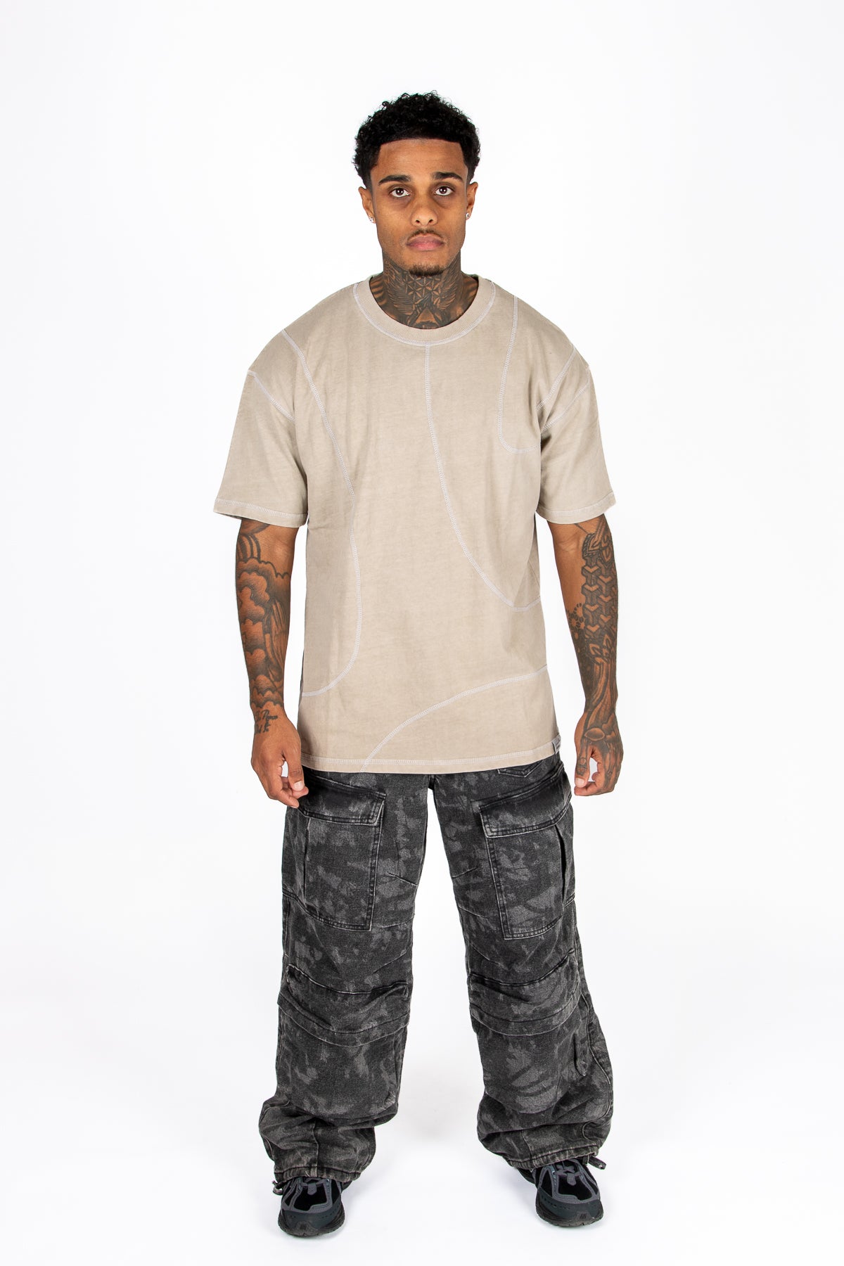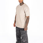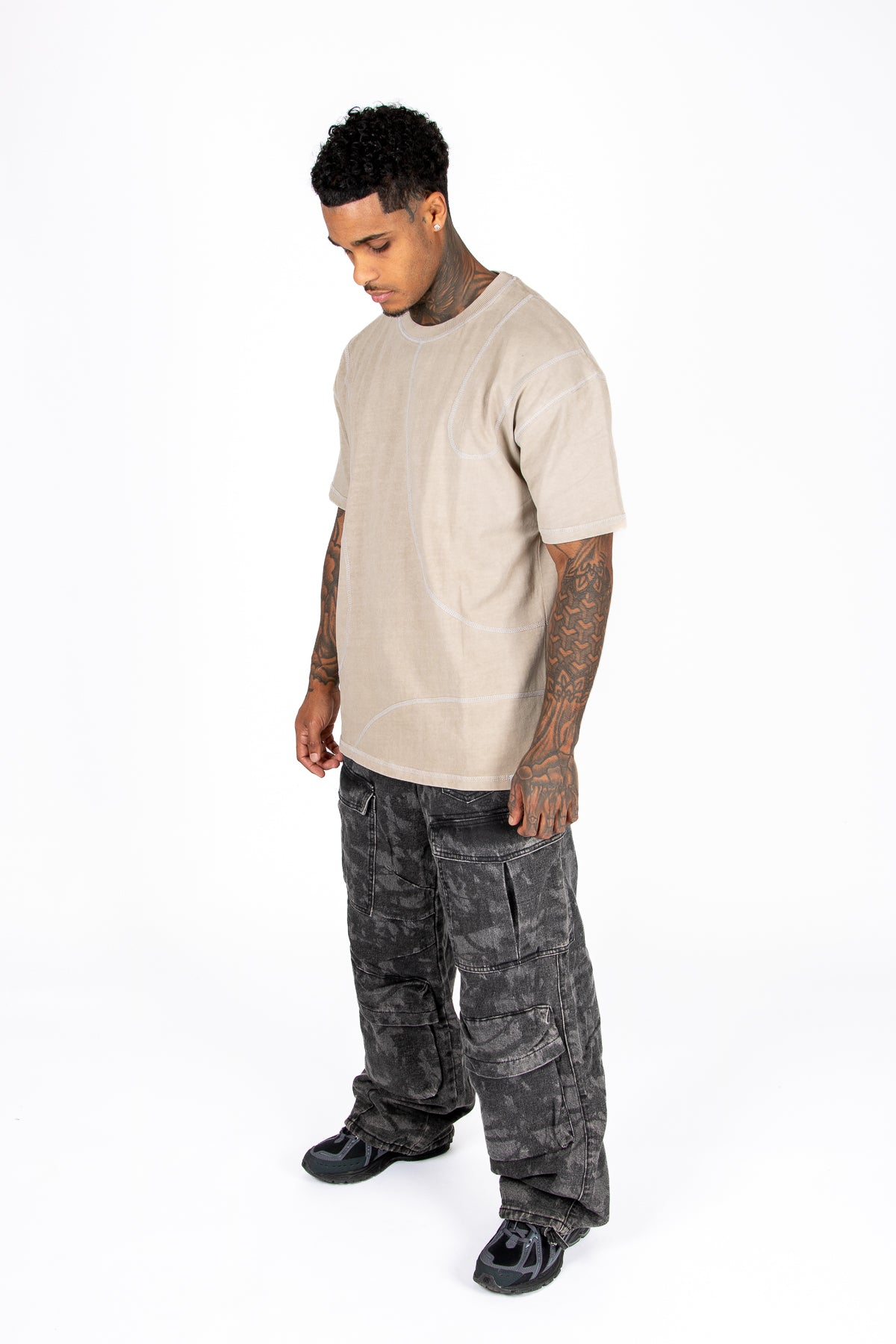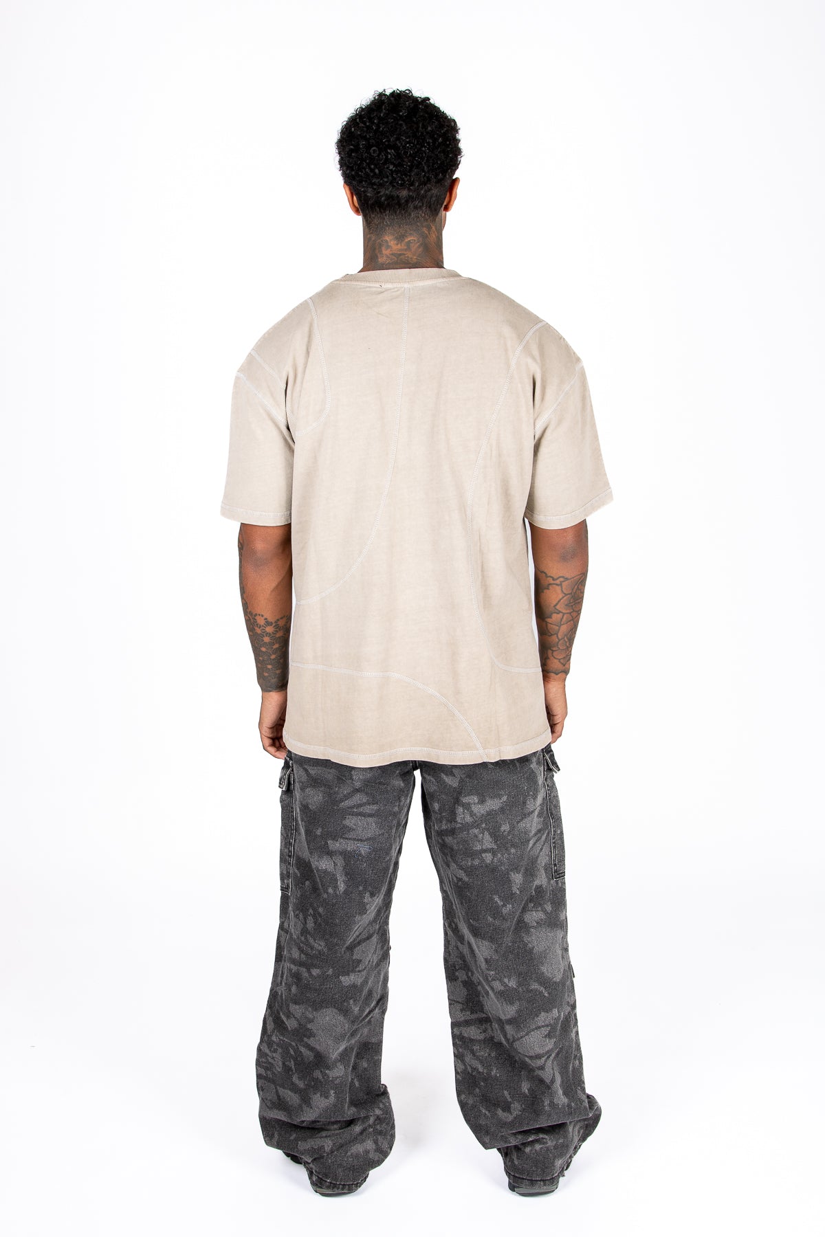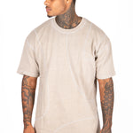 Washed Beige Relaxed Fit Raw Edge T-shirt
